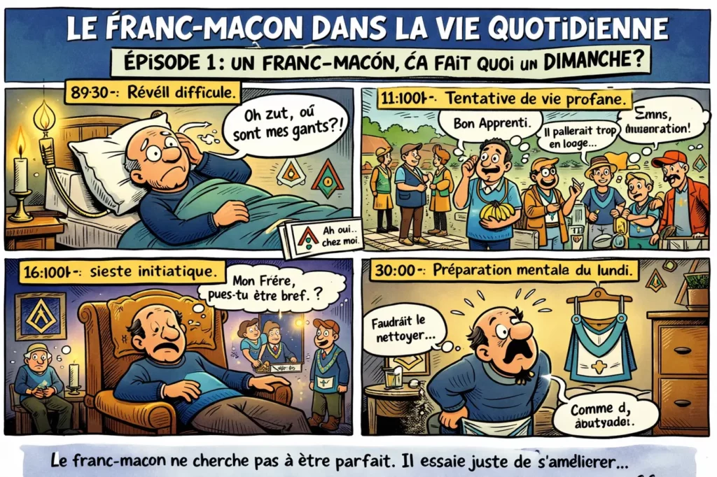 Car contrairement à une idée reçue, le franc-maçon ne passe pas son dimanche enfermé dans un temple secret à comploter contre l’humanité, à invoquer des symboles obscurs ou à polir son maillet en ricanant.