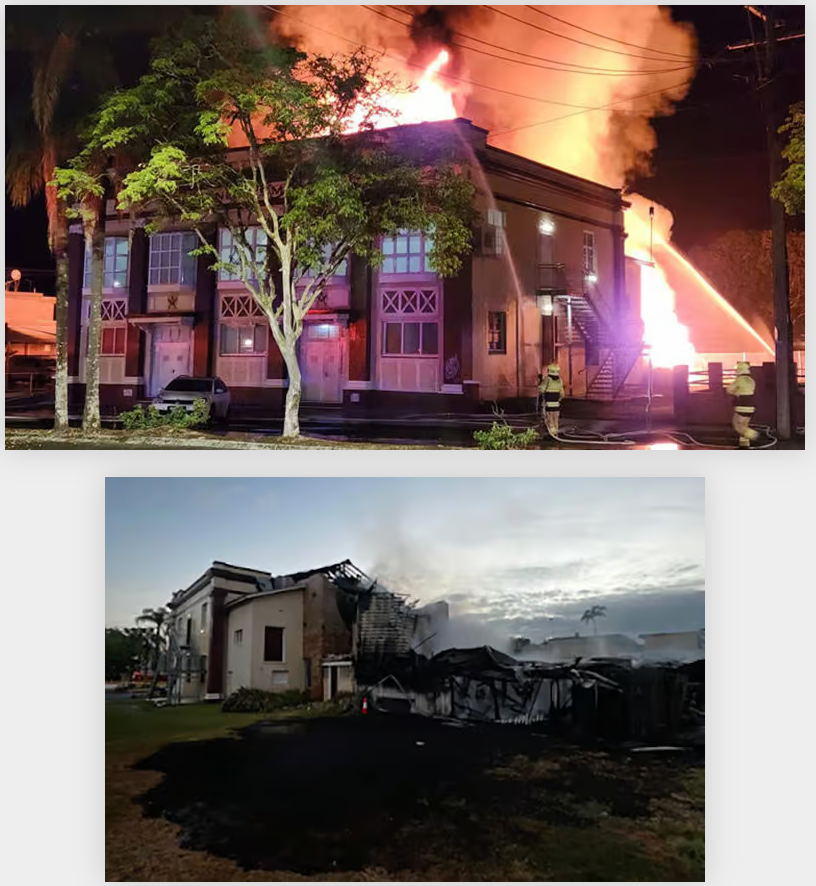 « À ce stade, il est trop tôt pour déterminer la cause et l’origine de l’incendie, mais nous le considérons comme suspect. Les dégâts sont catastrophiques. C’était un magnifique bâtiment, un monument emblématique de Lismore. »