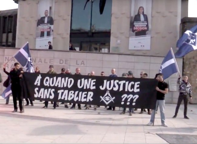 A Bordeaux, Samedi 19 mars 2016, devant l’École Nationale de la Magistrature, des extrémistes du mouvement Renouveau Français ont déployer banderoles et porte-voix le rôle pour soit-disant « dénoncer le rôle de la franc-maçonnerie dans la justice française et exigé « une justice sans tablier et le renvoi immédiat des magistrats francs-maçons » et ont incendier un drapeau de la franc-maçonnerie(Source http://www.infos-bordeaux.fr)
