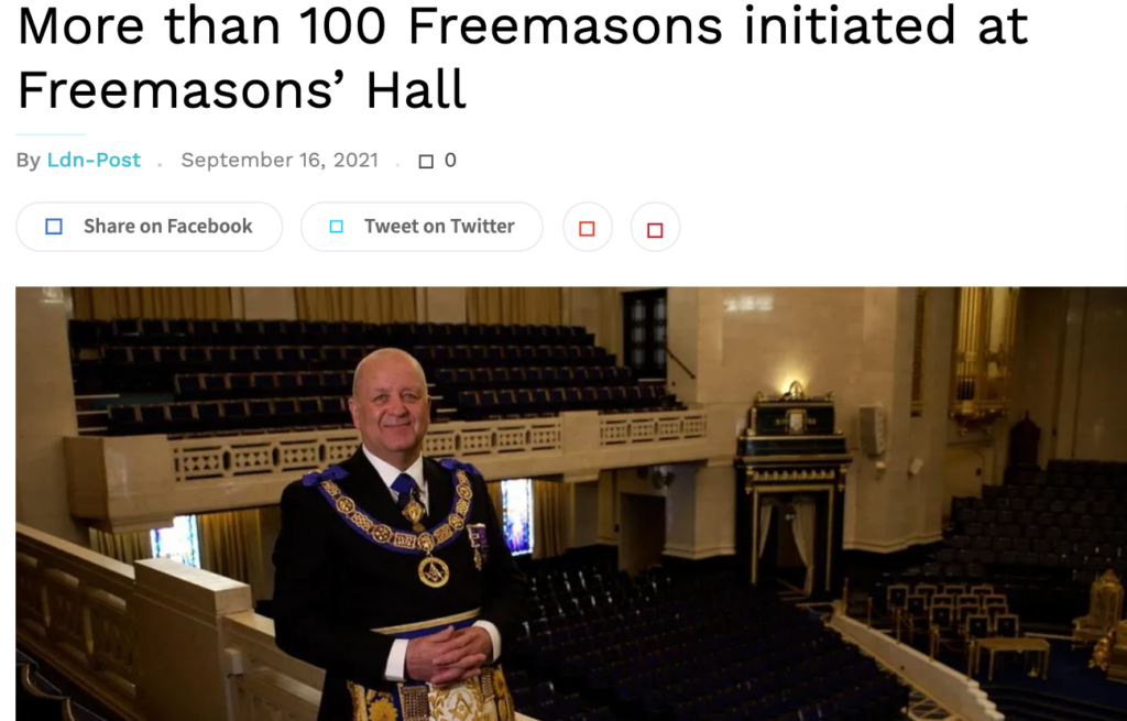 Le site anglais du LONDON POST a publié le 16 septembre 2021 l’article suivant « More than 100 Freemasons initiated at Freemasons’ Hall« , autrement dit