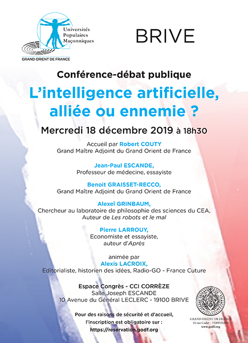 Conférence-débat publique dans le cadre des Universités Populaires Maçonniques mercredi 18 décembre 2019 à BRIVE