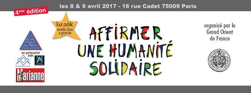 Du samedi 08 avril au dimanche 09 avril 2017, se dérouleront les Utopiales Maçonniques 2017 « Affirmer une humanité solidaire » à Paris, au siège du Grand Orient de France, rue Cadet.