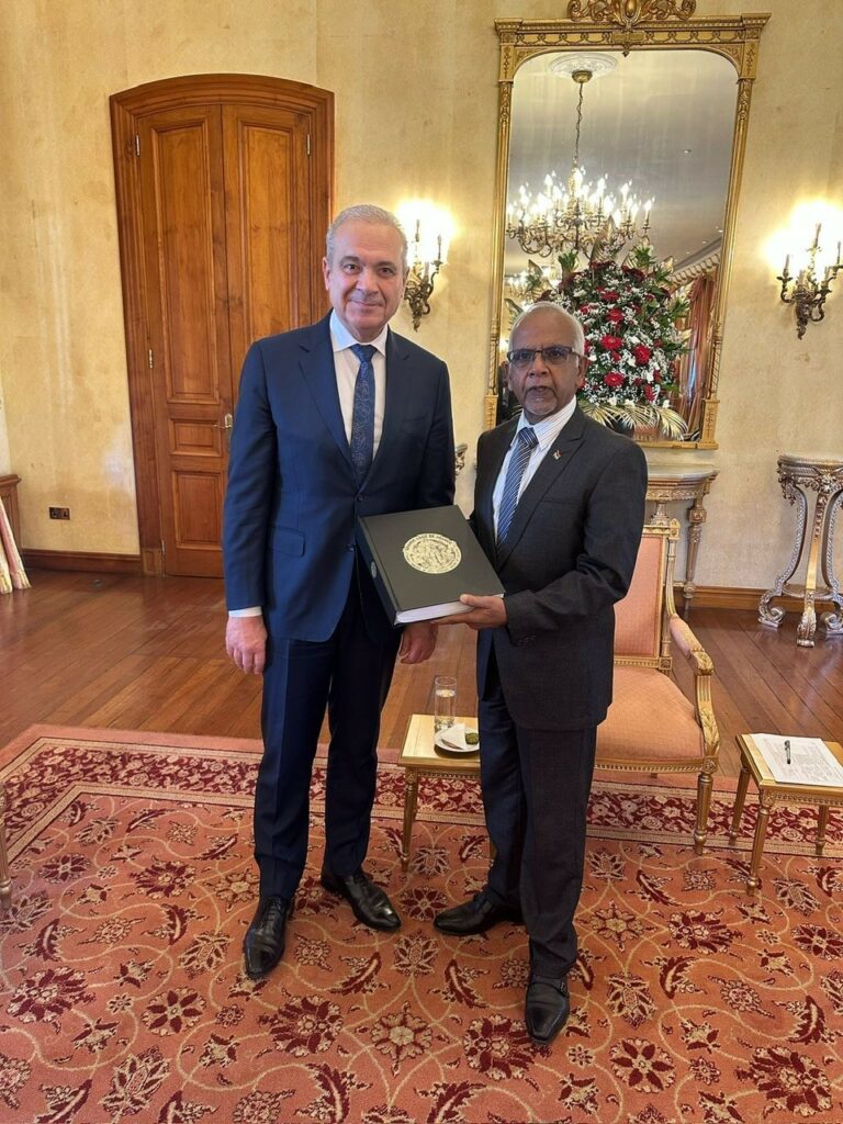 De gauche à droite : Thierry Zaveroni, Grand Maître de la Grande Loge de France, et Dharam Gokhool, Président de la République de Maurice.