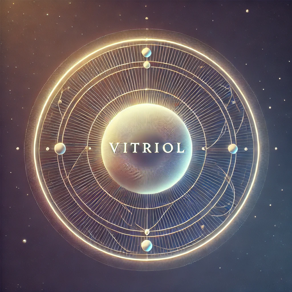 VITRIOL est l’acronyme de l’expression latine « Visita InterioremTerrae, Rectificando, Invenies Occultum Lapidem », qui signifie : Visitez le Centre de la Terre, en vous rectifiant, vous trouverez la Pierre Cachée (ou Philosophale). Philosophiquement, cela signifie : Visitez votre intérieur, purifiez-vous, vous trouverez votre moi caché, ou « l’essence de votre âme humaine ». C’est le symbole universel de la recherche constante de l’homme pour s’améliorer lui-même et pour améliorer la société en général.