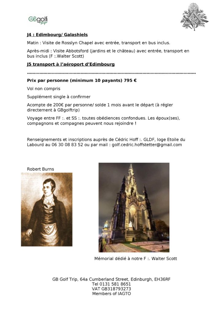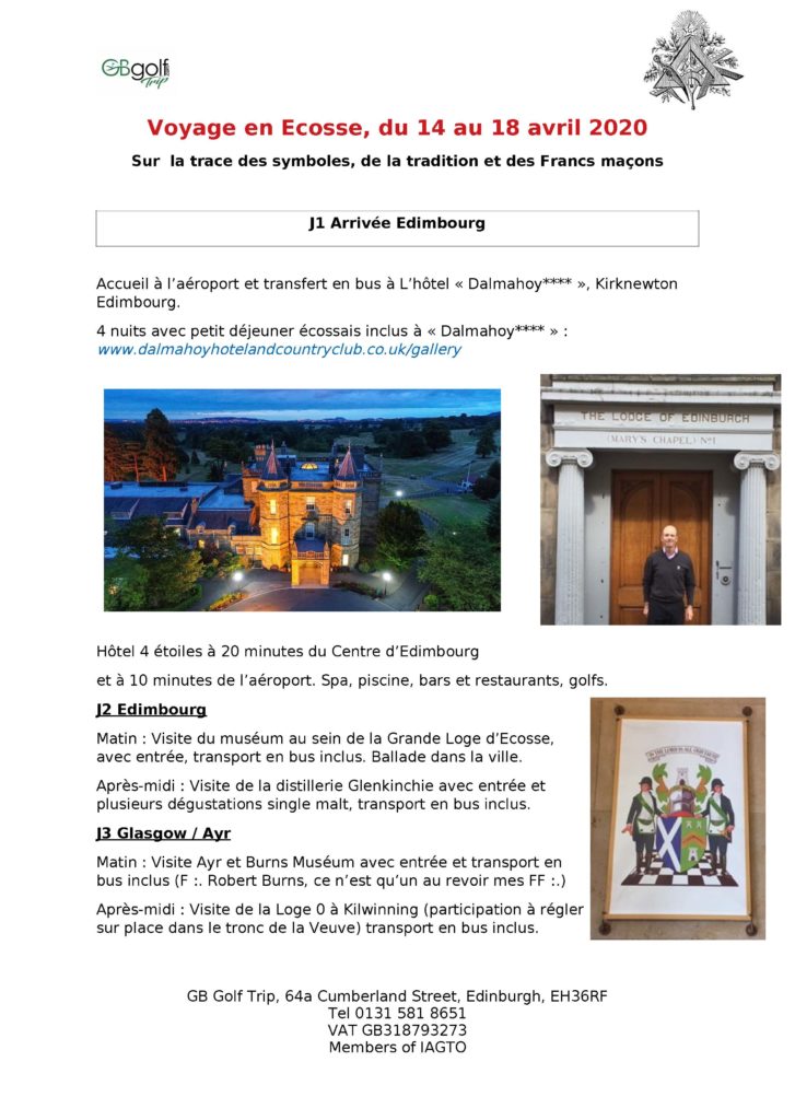 VOYAGE SYMBOLIQUE & MAÇONNIQUE EN ECOSSE Evenements | 13 janvier 2020 | 0 | by A.S. Nous avons reçu cette proposition de :VOYAGE SYMBOLIQUE & MAÇONNIQUE EN ECOSSE 14 au 18 avril 2020 TÉLÉCHARGER LE PROGRAMME